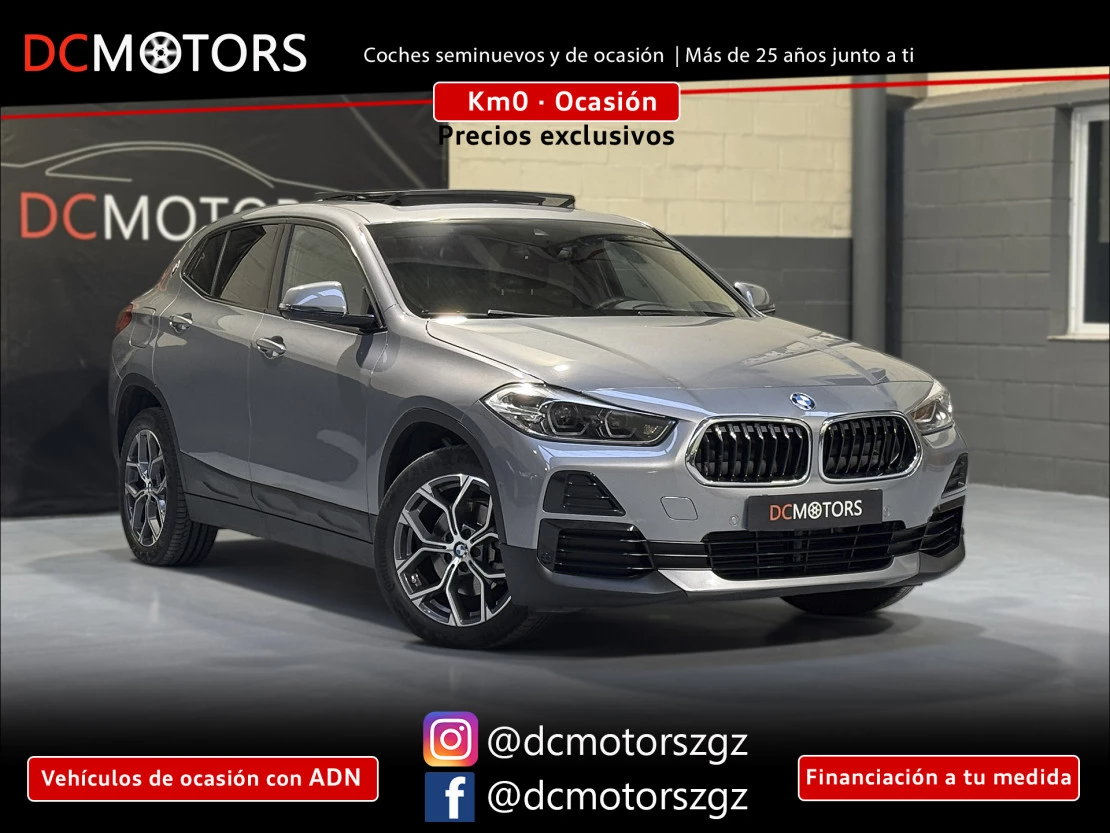 BMW X2 sDrive 18i automático, un SUV compacto premium con un diseño deportivo y una conducción muy cómoda tanto en ciudad como en carretera. Destaca por su excelente calidad de acabados, su comportamiento ágil y el equilibrio perfecto entre confort y dinamismo característico de BMW.